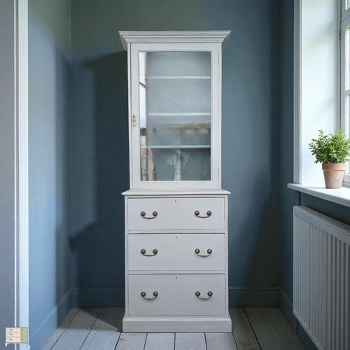 Edwardian Painted Mahogany Glazed Cabinet on Chest