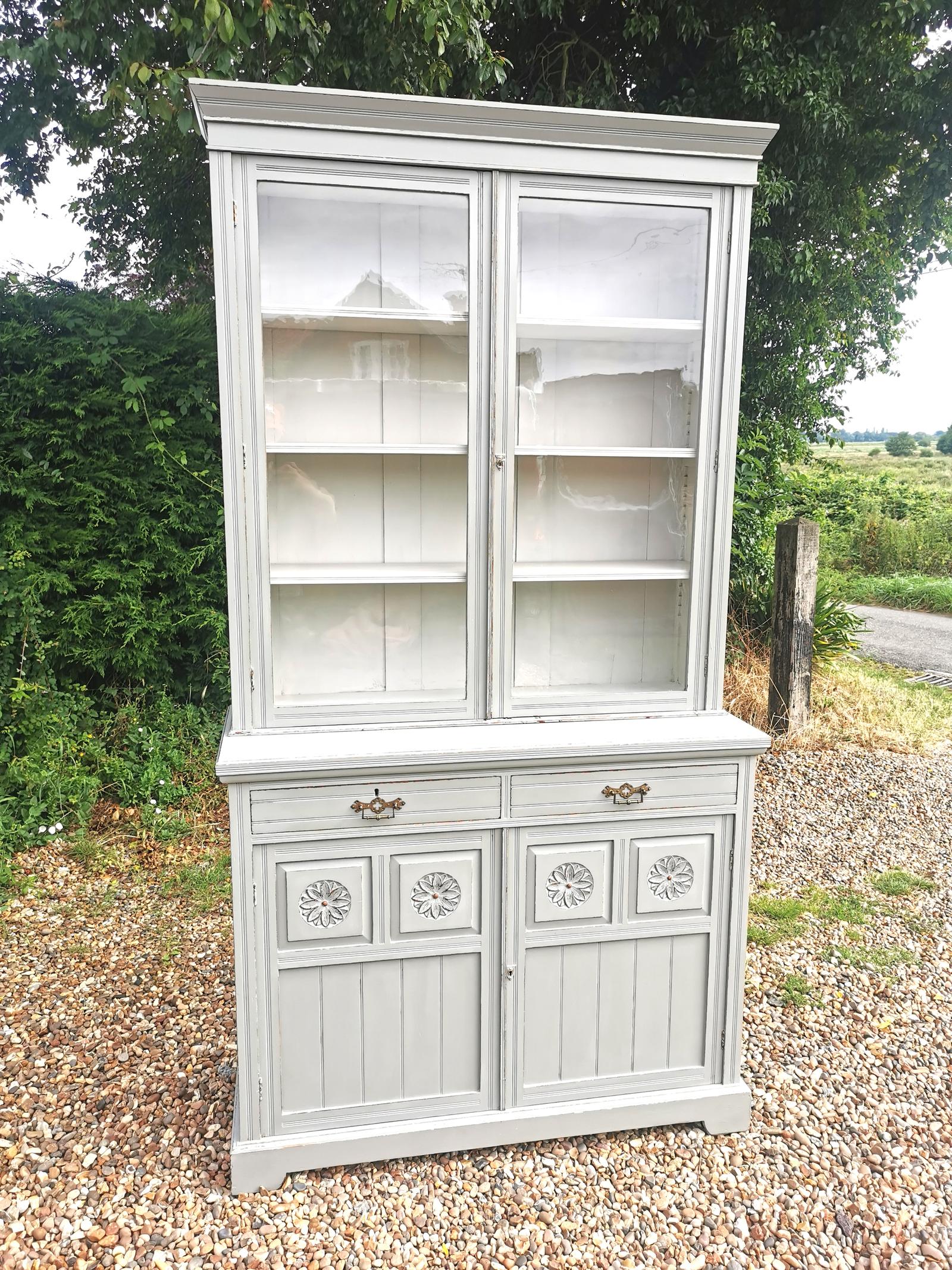 Edwardian Painted American Walnut Cupboard Glazed Dresser