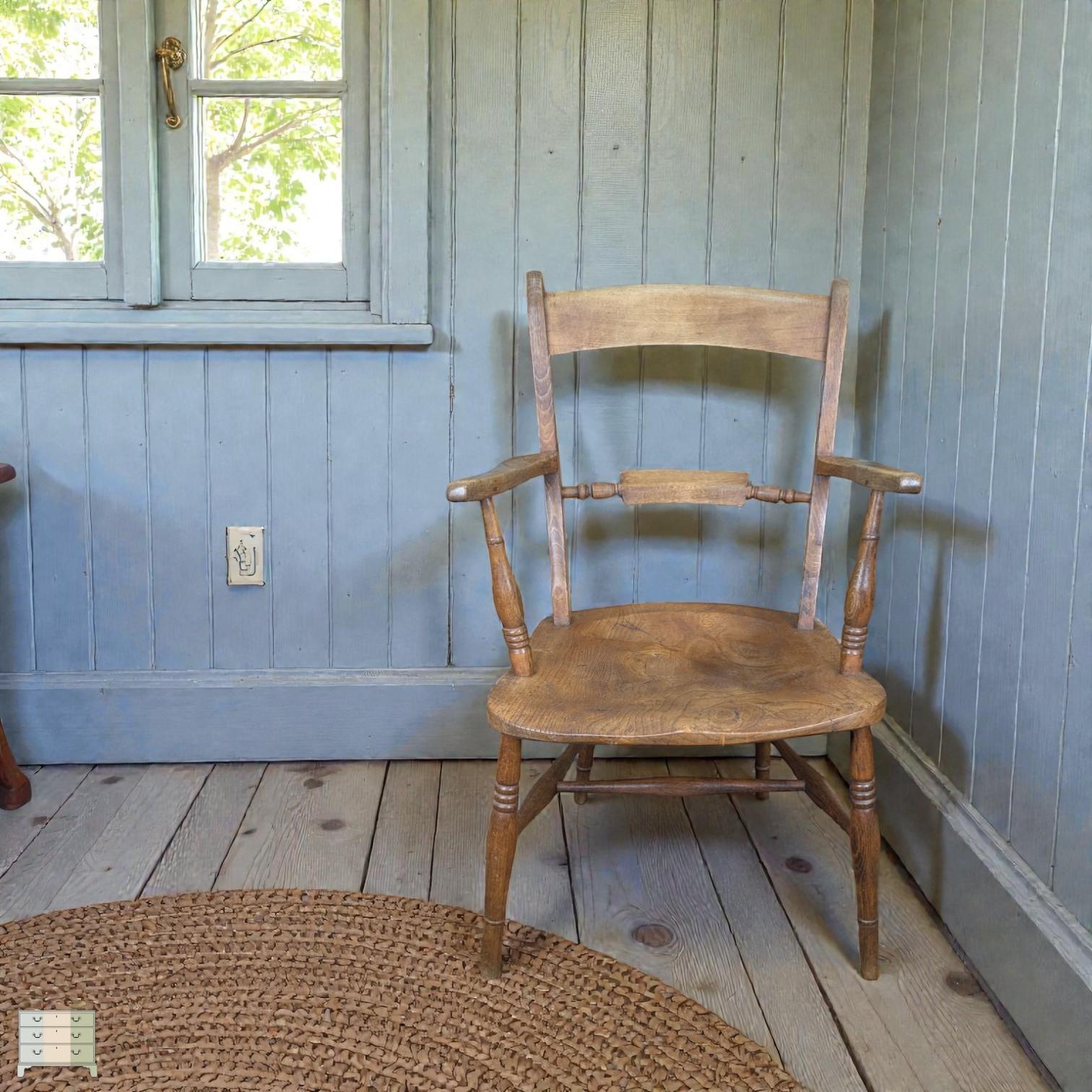 A late 19th Century Essex country arm chair, made of beech with solid elm seat. (Please note small repair to seat)