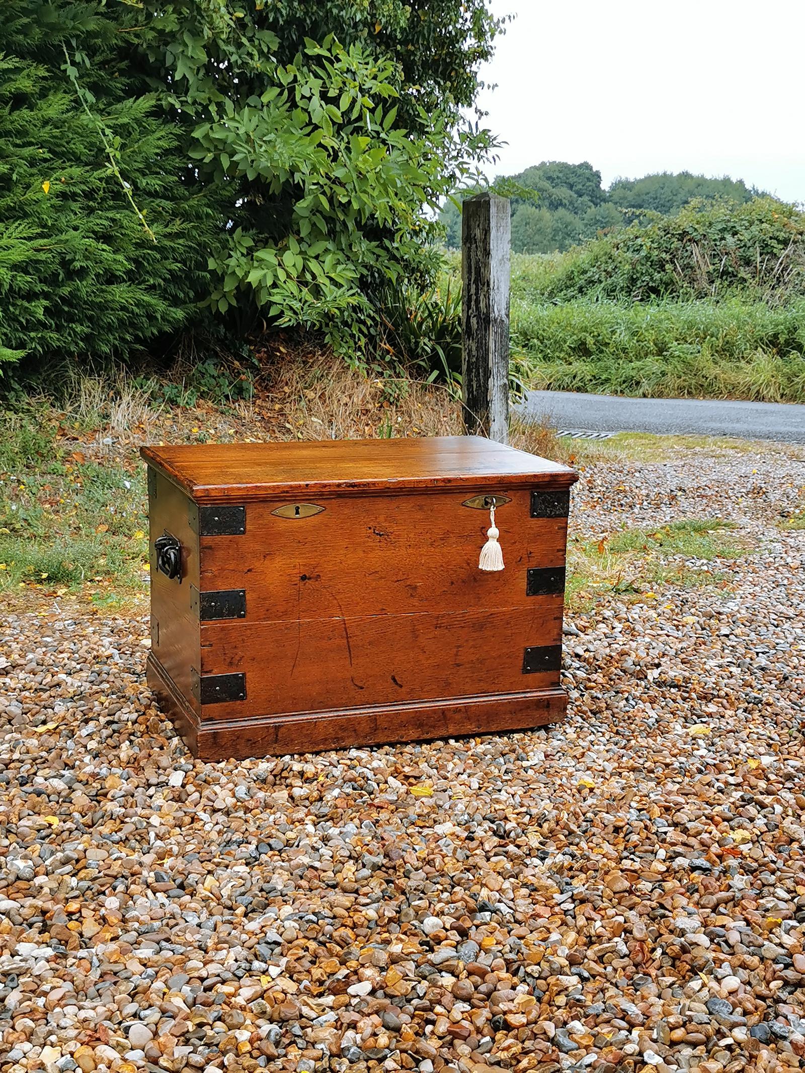 Late 19th Century Oak Metal Bound Traveling Silver Box