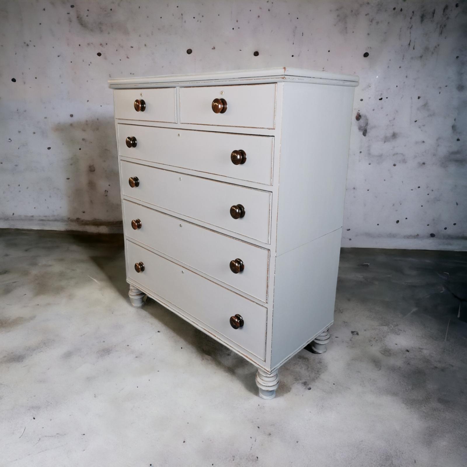 Mid 19th Century Painted Mahogany Chest of Six Drawers