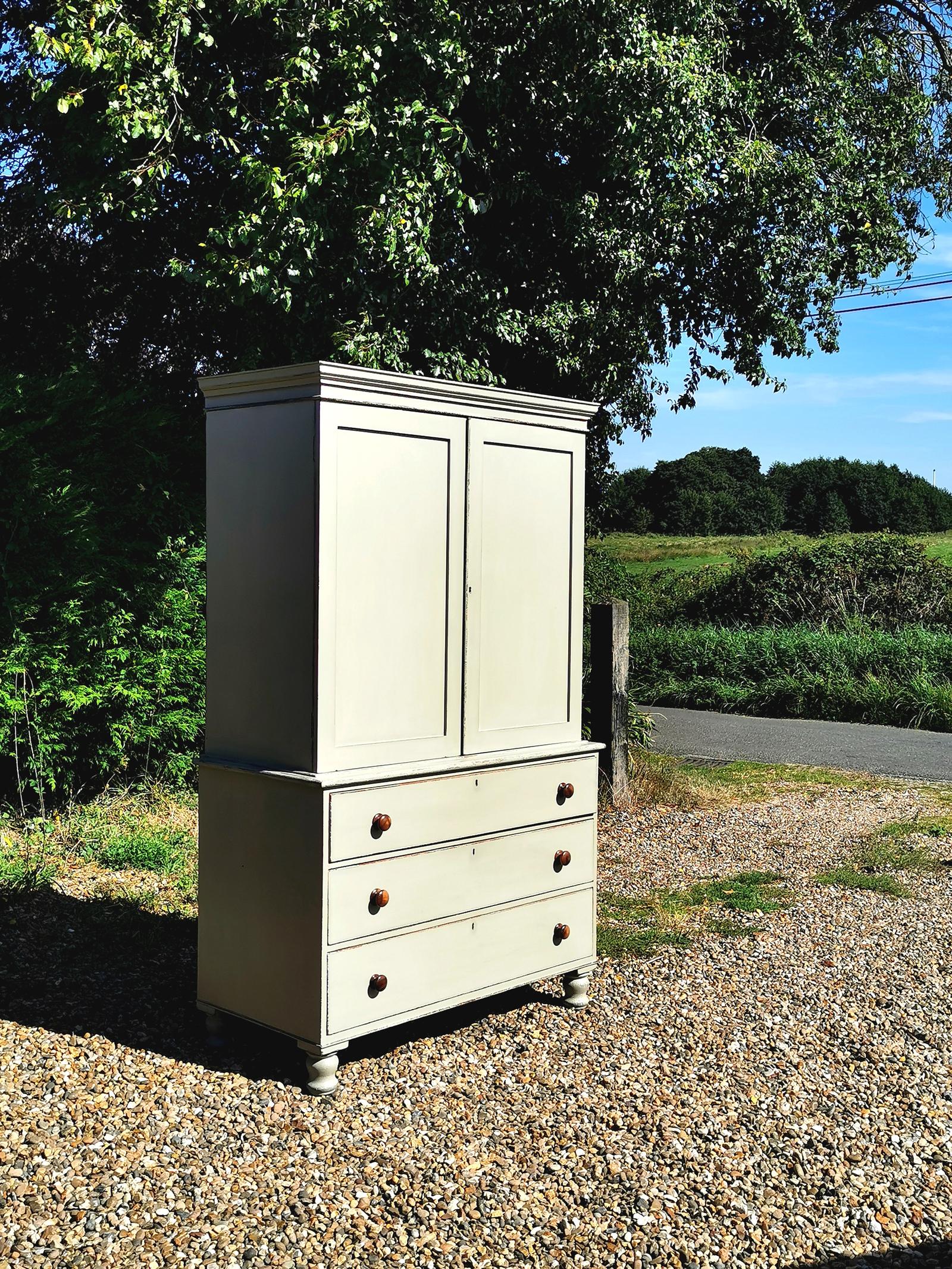 Mid 19th Century Painted Mahogany Linen Press Wardrobe
