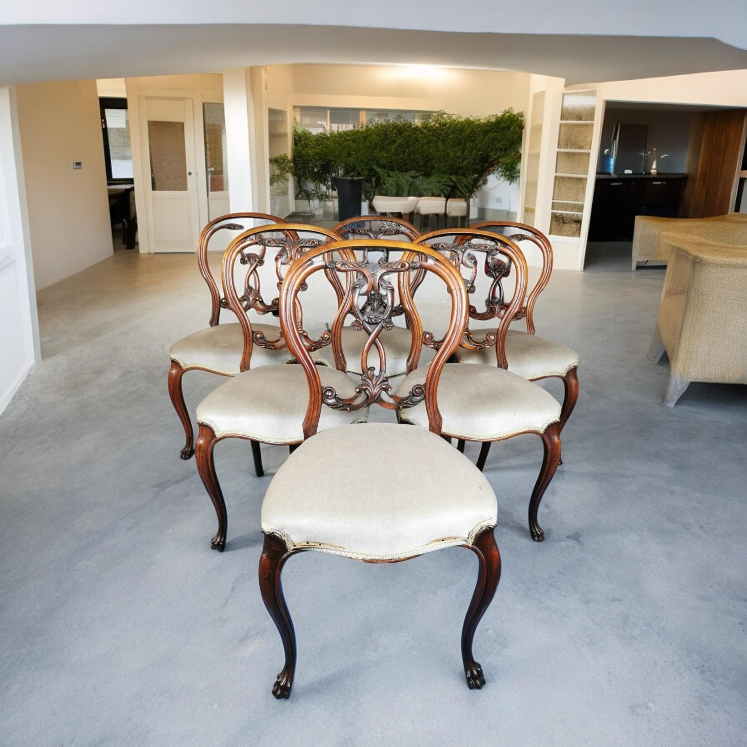 Set of Six Victorian Carved Walnut Parlour Chairs