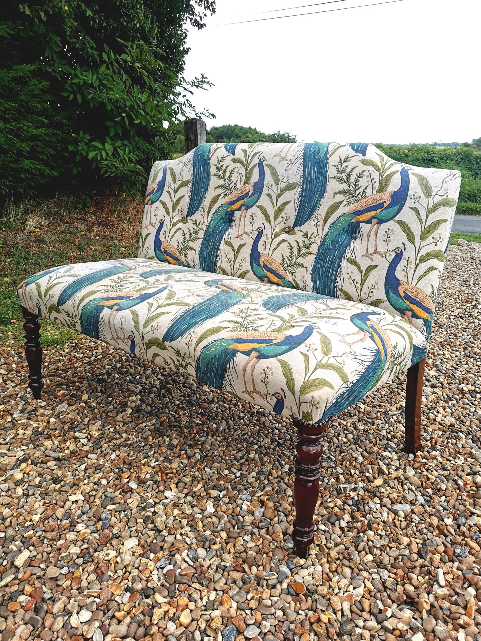 Victorian Mahogany Upholstered Two Seater Hall Chair